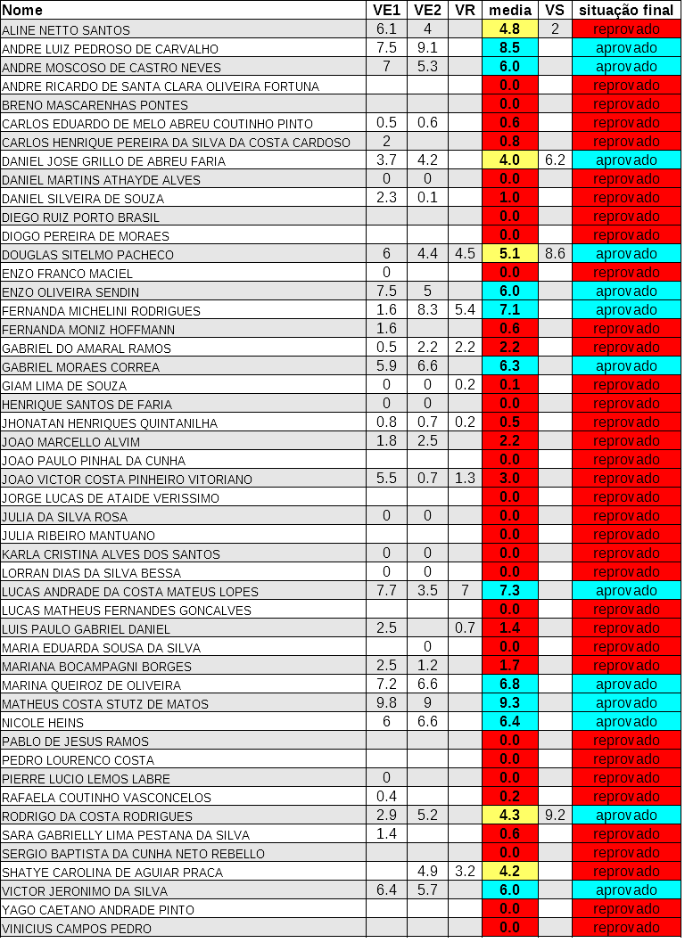 Notas da VE2: Turma S1 – Turma T1
